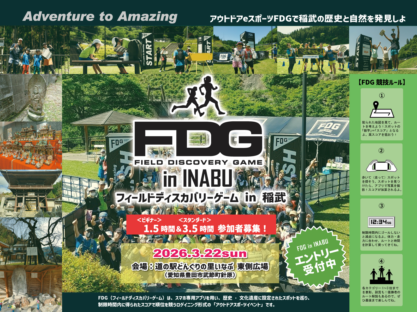 フィールドディスカバリーゲーム(FDG)は、現実のフィールドに設定された「ディスカバリースポット」を巡るアウトドアスポーツイベントです。参加者は、地図をもとに特定のスポットを訪れ、写真を撮影して証明することで得点を競います。このイベントは、ロゲイニング形式で行われ、制限時間内にできるだけ多くのスコアを獲得することが目的です。